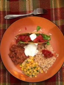 I don’t need to tell you how to make tacos. I do make my own quick refried beans though. I use canned pinto beans, minced onion and garlic, oil, tomato paste and pepper flakes. Cooked together until you can mush the beans.