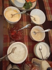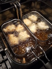 The hush puppies went with a spicy cherry jelly we made a few years ago with prairie hardy Evans Cherries. I made a simple honey yogurt dip to go with the apple fritters.