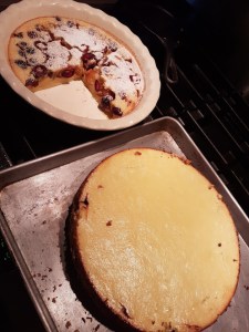 Beat the cream cheese and sugar together well, then add eggs one at a time. Pour batter over the crust (I poured half, put in some pitted cherries, then poured the rest over)