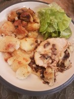 My hubby got the stove end of the kitchen. He made the mushrooms for the turkey wellington, the stuffing and the potatoes.